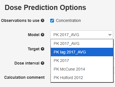 Figure 4 Dose prediction options with 4 day cum AUC selected